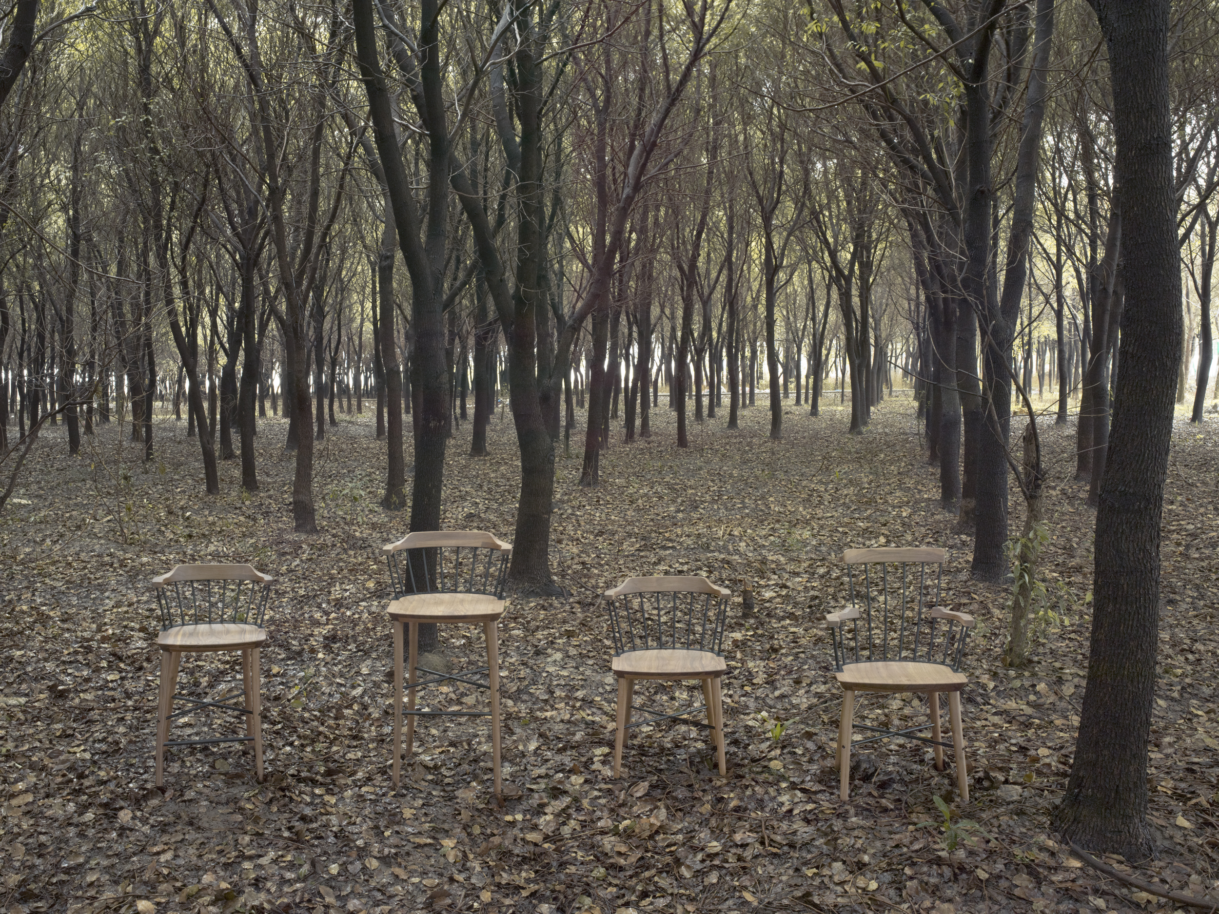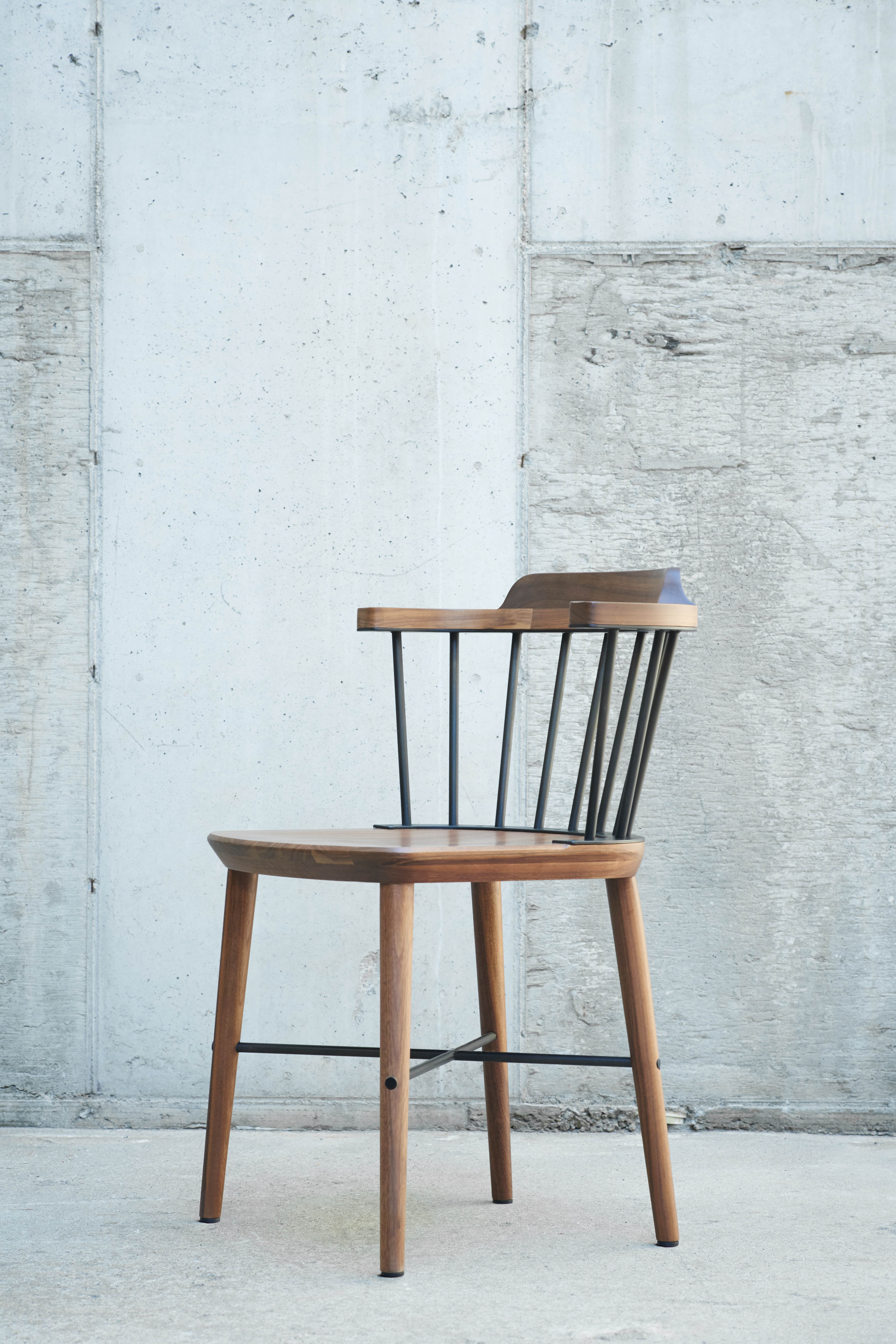 Exchange系列的设计参考了英国17世纪末18世纪初的温莎椅设计类型,并把原型的纯实木结构改造为木质和钢制的混合结构,创造出了一系列既现代又经典的座椅家具。