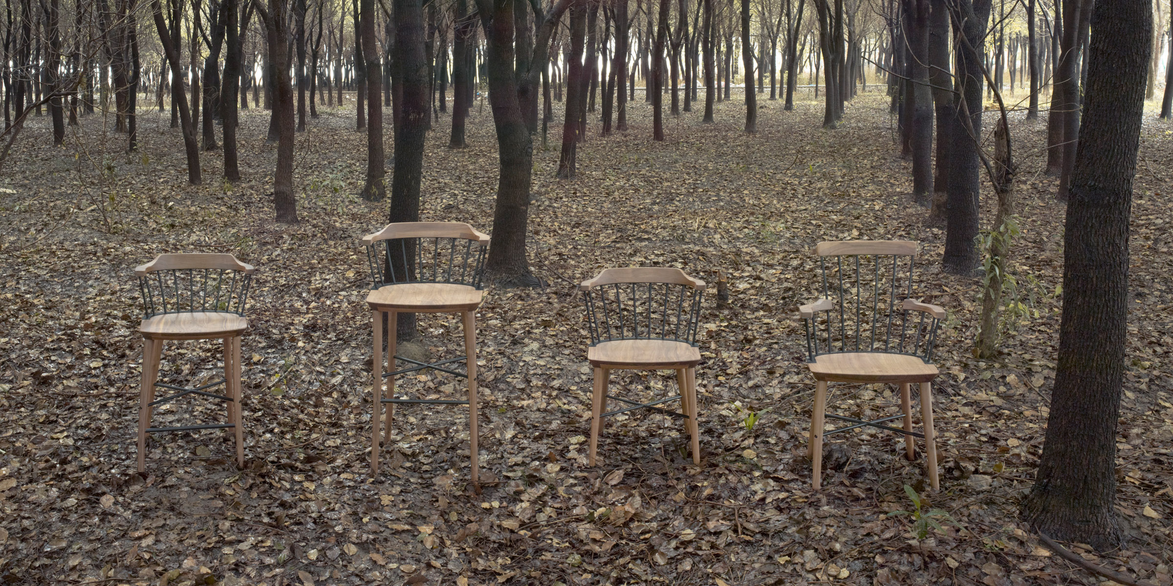 Exchange系列的设计参考了英国17世纪末18世纪初的温莎椅设计类型,并把原型的纯实木结构改造为木质和钢制的混合结构,创造出了一系列既现代又经典的座椅家具。