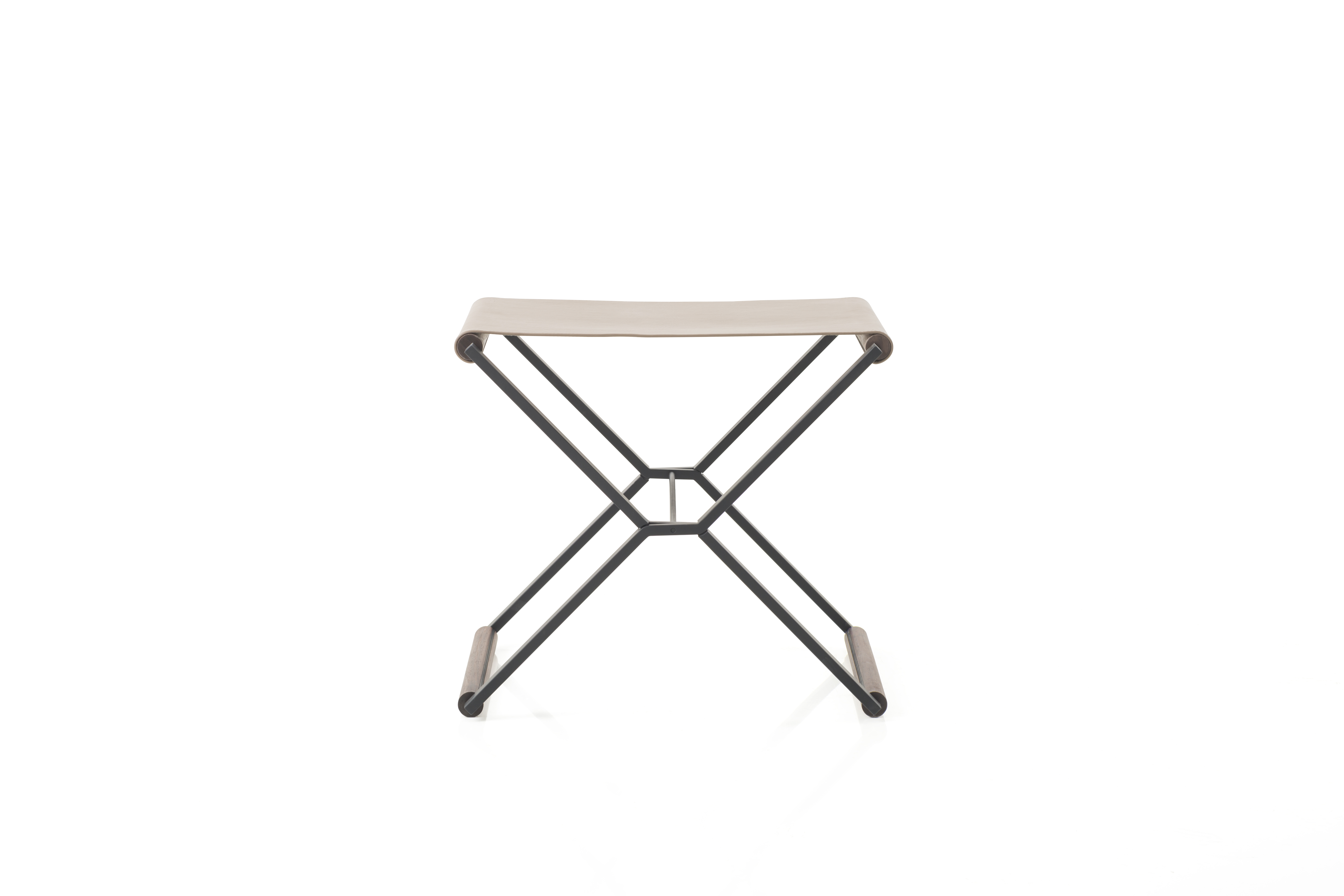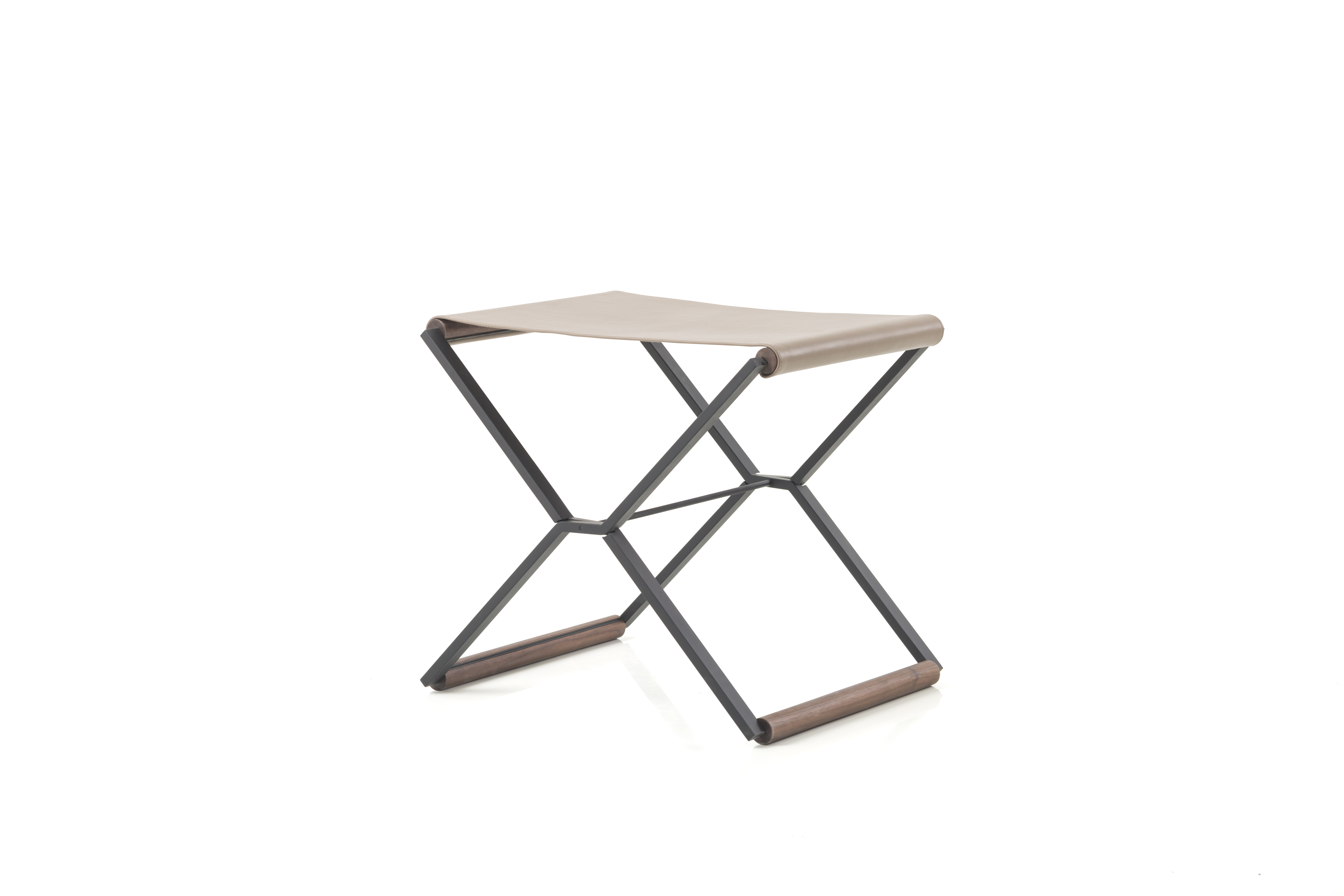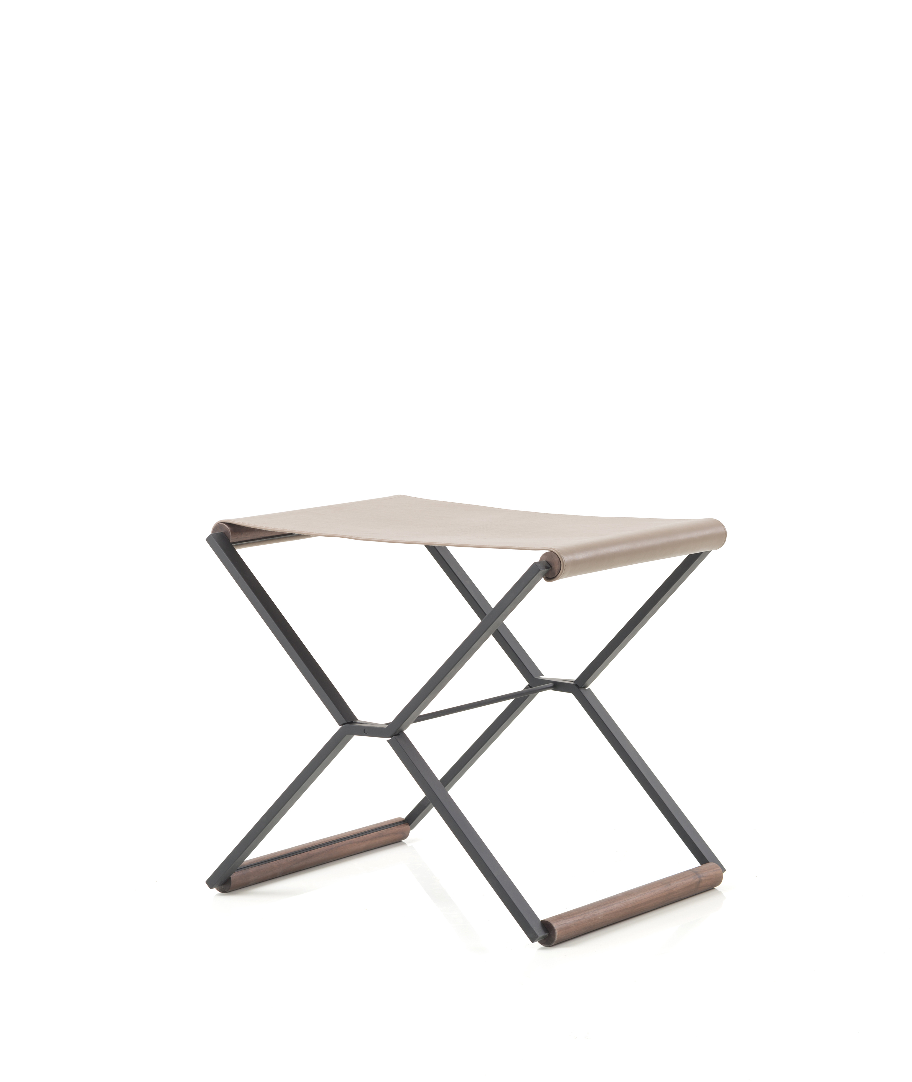 材质说明 铁黑色麻面烤漆,胡桃木实木,皮座面 *如需参考更多软包选择,请见"布料&材质".