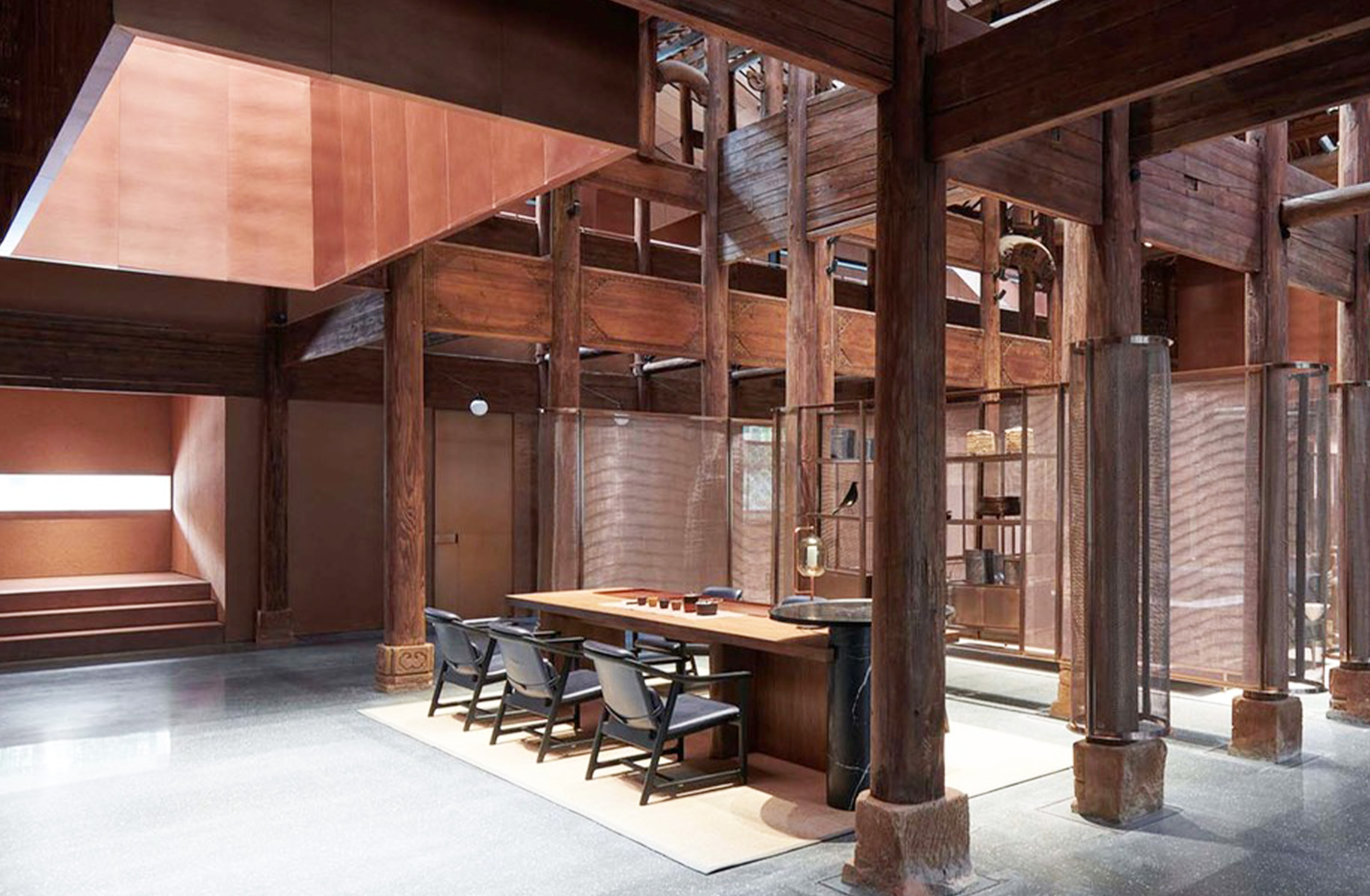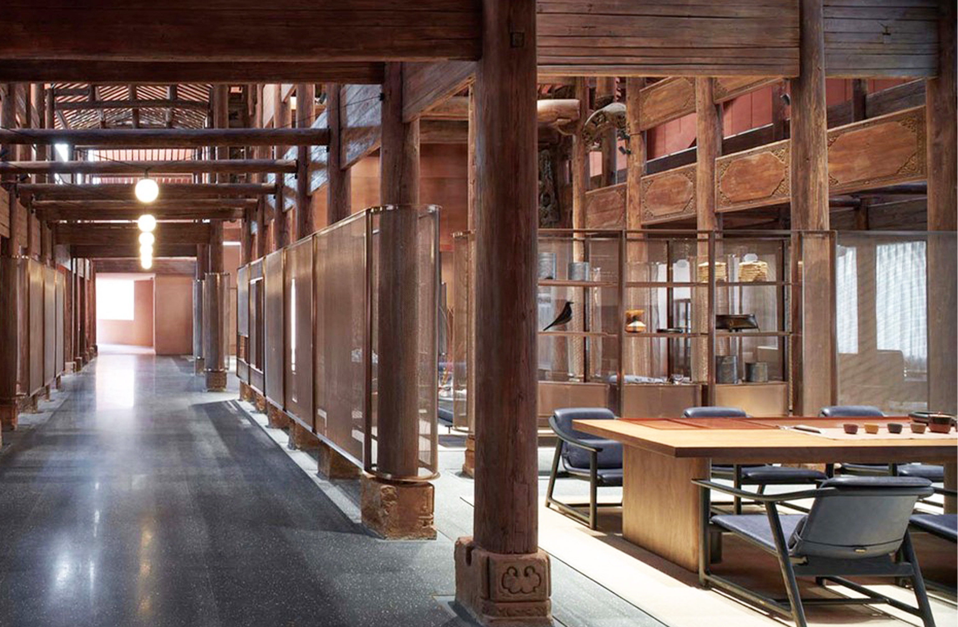 The challenge of this project was to create an enclosure for a Chinese artefact – the wooden structure of a Qing dynasty official’s residence, replete with decorative carvings and sophisticated joinery. Neri&Hu played subtly on the contrasts of bright and dark, light and heavy, coarse and refined, creating a modern tea house that retains a sense of nostalgia.